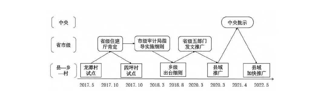 农民基于现实问题形成的解决思路,经推广可以惠及更多群众。在中国的现实情境中,“试点-推广”是地方政府最广泛和遍及的扩散程式,基层基于面对现实条件和政策的约束,具有打破原有桎梏的动机,产生的试点方案更具生命力。基层在实际操作中发现现代工程管理办法不符合乡村建设项目需求,而“工料法”作为原始的工程管理办法恰恰满足传统建筑工程的需求,其经验能被推广实施正是发挥了农民首创精神的重要体现。